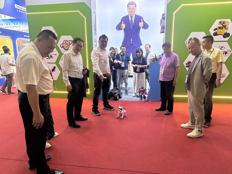 在玩具展区,汕头市大业塑胶玩具有限公司携电动智能玩具狗惊艳亮相,为智能玩具领域注入了新的活力。这款电动玩具狗融合了先进的电动技术,具备多种互动功能,不仅能灵活行走、翻身、摇头摆尾,还能通过内置传感器与使用者进行智能互动,展现出高度的趣味性和科技感。商会常务副会长邱志宏表示:“随着全球玩具市场的持续增长,消费者对智能化、互动性玩具的需求日益增加。为了顺应这一市场趋势,大业玩具将传统玩具与现代科技完美结合,为消费者带来了全新的体验。”他还分享了广交会参展心得:“广交会作为全球贸易的重要平台,不仅是展示企业创新成果的绝佳机会、企业与国际采购商交流合作的桥梁,更是同行交流的盛宴。大家一定要利用好短短五天的参展时间,想尽办法展示新品,吸引客户,让每一次展示都成为拓展市场,提升品牌影响力的契机。”现场的演示吸引了众多采购商的目光,他们纷纷驻足观看,对这款创新产品表现出浓厚的兴趣。