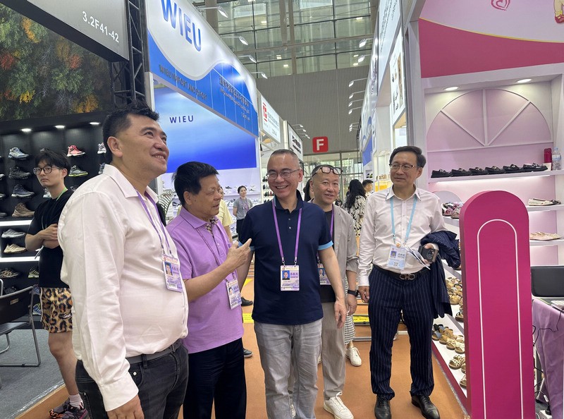 在鞋类展区,商会副会长兼鞋类分会副主任朱荣彬分享了他的观察与见解。他指出:“本届广交会吸引了众多欧洲采购商前来询价,这一现象充分表明欧洲市场的需求正在逐步恢复并呈现增长态势,为外贸企业带来了新的发展机遇。”他进一步介绍道:“在当前复杂多变的国际贸易环境下,鞋类行业受到了美国对等关税政策的一定影响。然而,鞋类分会的成员们积极应对,经常一起参加行业展会,互相分享市场动态与经验,互相学习借鉴,以‘抱团取暖’的方式共同应对市场的各种挑战。”