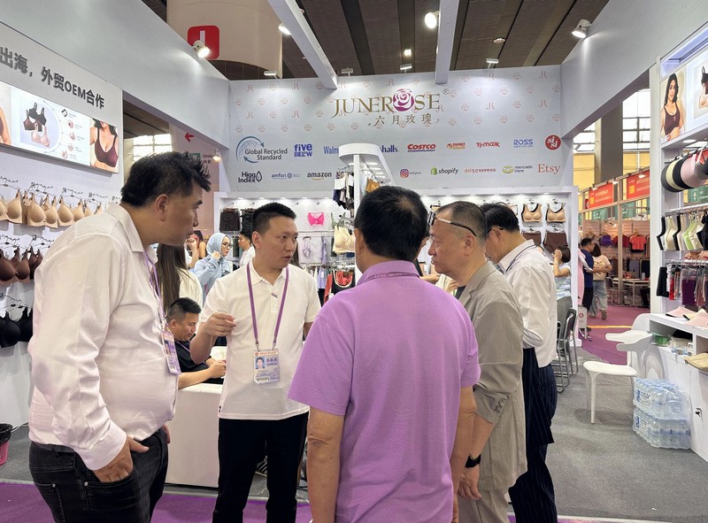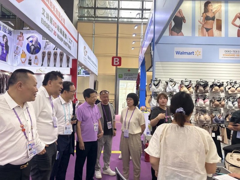 随后,商会常务理事会班子走访了内衣展区副会长单位宏杰内衣股份有限公司。此次广交会,宏杰公司带来了新品运动帽,一经亮相便吸引了众多目光。副会长张基鸿向大家介绍:“这款运动帽采用了我们一体式无痕内衣裁剪工艺,结合了先进的面料技术,不仅轻便透气,还具备出色的防晒和防紫外线功能,完美契合了健康与时尚的双重追求,我们将不断创新、持续改进产品,借助广交会这一国际化平台,进一步推广企业品牌,拓展全球市场,开启新的征程。”