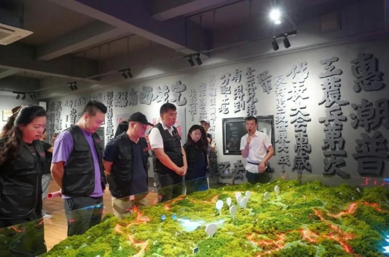 慰问结束后,商会一行来到大南山革命历史纪念馆,通过图文展板和史料,追寻澎湃、徐向前等老一辈革命家的奋斗足迹。党员们凝视着锈迹斑斑的枪支、泛黄的文件等革命文物,聆听着一段段可歌可泣的故事,深切感受到革命先辈们坚定的理想信念和无畏精神。随后,众人前往红场公园革命烈士纪念碑缅怀先烈。在邱志宏会长带领下,全体党员及企业代表整齐列队,敬献鲜花、鞠躬默哀,并环绕纪念碑瞻仰,表达对先烈的深切缅怀与崇高敬意。