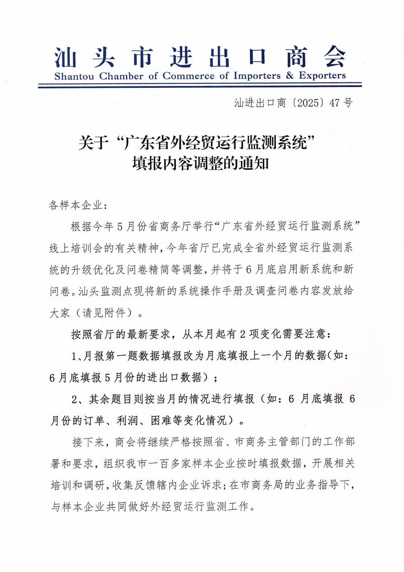 关于“广东省外经贸运行监测系统”填报内容调整的通知