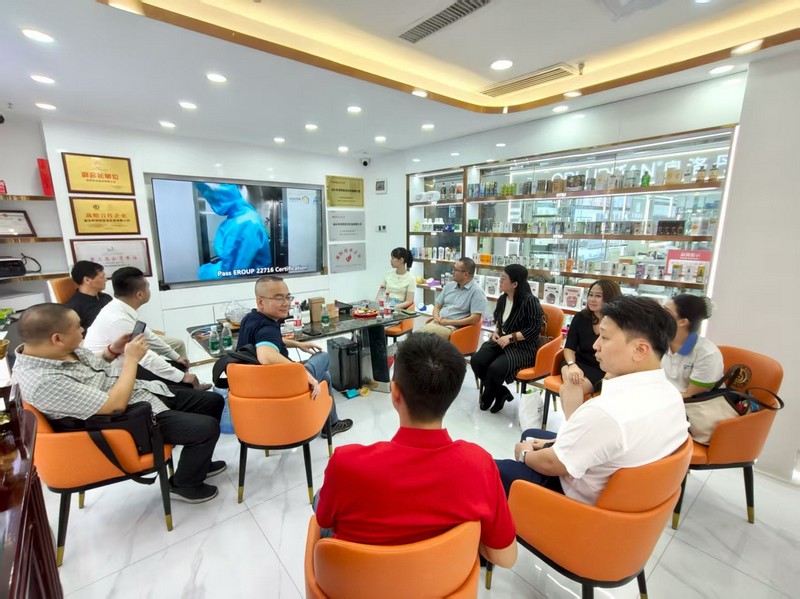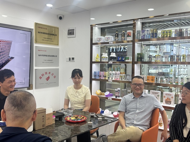 9月12日下午,汕头市进出口商会组织参加广东优品展的部分企业代表,赴商会副会长单位、汕头监测点样本企业——汕头市深特宝洁有限公司广州办事处开展参观交流活动。活动受到深特宝洁副总经理吴志坚及办事处负责人的热情接待,商会常务副会长张秋娜、张泽钦、副会长陈松鹰、朱荣彬、理事林长轩、方堃莉,监事长陈晓东,会员代表张佳伟、秘书长王枫及秘书处工作人员等共10多人参加活动。