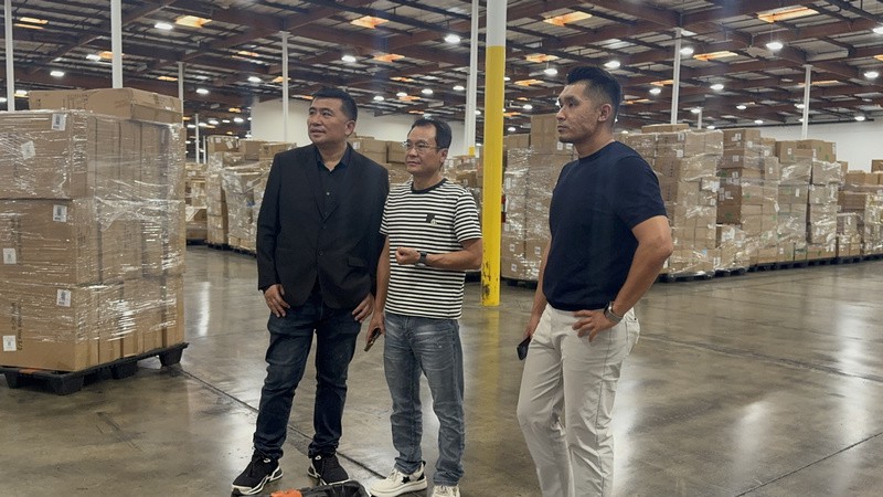 此次拜访受到美国南加州华人社团大联盟主席、美国东方文化联谊会会长林淦花,美国国际物流协会会长谭勇,以及美国粤商会会长张铁流等侨领的热忱接待。交流中,侨领们重点推介了洛杉矶及南加州地区的侨商资源与产业优势。他们指出,洛杉矶作为美国西海岸的经济、文化双枢纽,汇聚了大批实力雄厚的潮商企业家,业务覆盖电子科技、智能制造、跨境贸易、文化创意等多元领域;当地不仅拥有成熟的本土市场网络,更在链接中美供应链、推动双向投资方面具备独特且重要的优势。座谈结束后,邱志宏会长在林淦花主席及各位侨领的陪同下,实地参观了美国南加州华人社团大联盟旗下的“物流海外仓”,详细了解其运营模式与综合服务能力。