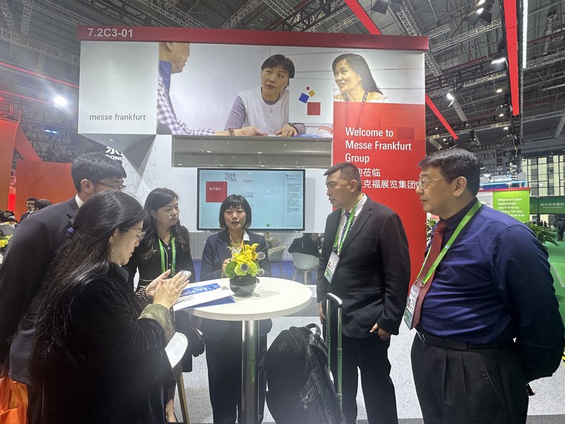 此外,商会更受邀前往米奥兰特展位交流。米奥兰特团队重点介绍新推出的 “展品展示服务” 及 “AI 眼镜参展辅助功能”—— 前者通过在全球多地展后设立展销中心,帮助汕头企业的出口产品延长曝光周期、持续对接海外买家;后者集成实时翻译、智能导购、采购需求匹配功能,有效解决 “语言障碍”“匹配难” 等痛点。代表团现场体验 AI 眼镜操作流程,同时围绕汕头企业参展需求,咨询米奥兰特在 “一带一路” 沿线国家的展会资源。随后,商会与法兰克福展览集团、慕尼黑博览集团负责人展开交流。邱志宏会长结合汕头玩具、文具、轻工机械等特色产业优势,系统介绍了商会带领会员企业 “抱团出海” 的合作意愿,希望依托两大集团全球展会资源,为企业争取优质参展席位、搭建精准出口对接渠道。