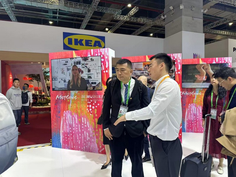 随后商会重点参观泡泡玛特、沃尔玛、宜家等大型商超展位以及苏美达集团等大宗进出口平台。了解泡泡玛特 IP 创造、运营及衍生品开发经验,以及各平台的全球采购标准、选品逻辑与供应链合作模式,还主动向商超负责人推介汕头玩具礼品、家居用品、电子消费品等优势产业的核心产品与企业实力。