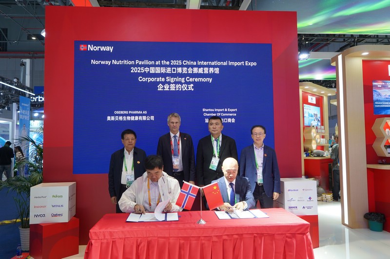 当日,在挪威驻华大使Vebjørn Dysvik,商务参赞汉宁,挪威卫生部副部长等及商会代表团的见证下,我会副会长李周凯代表广东煌记食品有限公司与挪威奥斯贝格药业有限公司顺利签署战略合作框架协议,就品牌推广、食品大健康领域合作等事宜达成合作意向,双方将以此次签约为契机,共探食品与保健品的进口代理、联合研发路径,挖掘市场潜力,同步提升品牌价值与行业影响力。