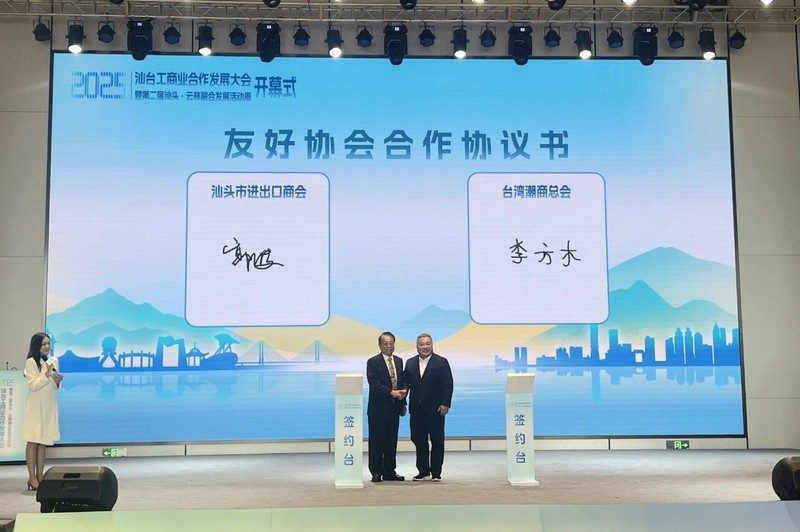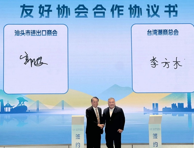我会常务副会长郭波、理事袁明武及会员企业代表共12人参加活动。现场,郭波常务副会长代表汕头市进出口商会与台湾潮商总会签署《友好协会合作协议书》。接下来,双方将推广会员企业优质品牌及特色产品,深化汕台两地经贸文化交流,为推动汕头与台湾融合发展注入新动力。