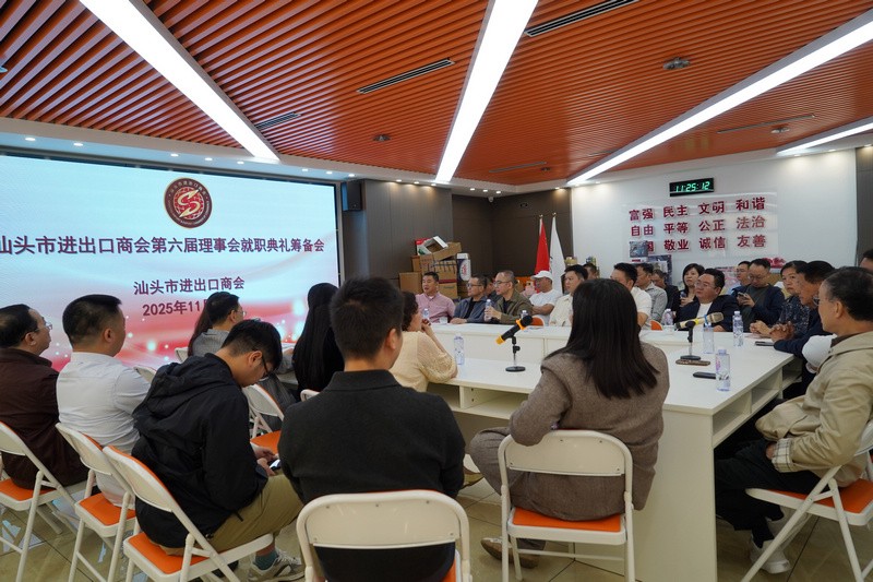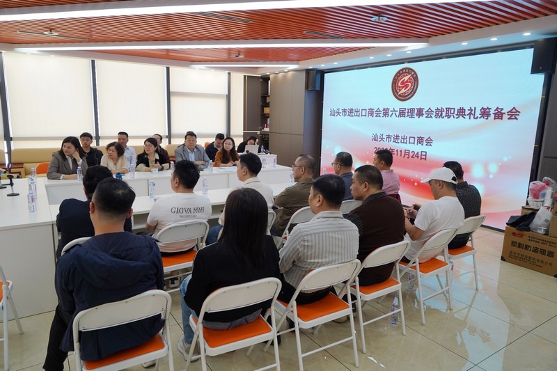 为确保汕头市进出口商会第六届理事会就职典礼暨“以侨为桥,助力汕货卖全球”共兴外贸高质量发展大会顺利举办,凝聚行业力量、共绘发展蓝图。11月24日上午,商会在会址召开了筹备工作会议。商会常务理事成员、秘书处工作人员齐聚一堂,以“高标准、严要求、重实效”为原则,全面部署各项筹备事宜,吹响冲刺盛会的集结号。