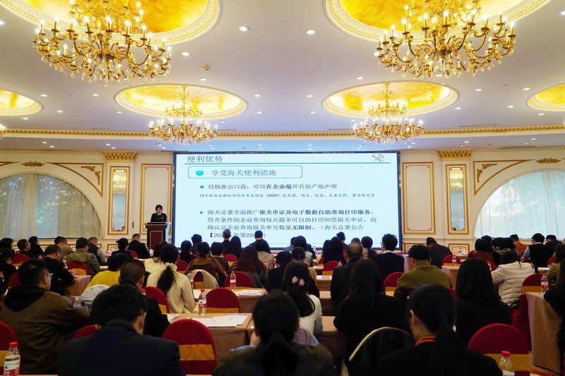 王雪斌副关长在致辞中表示,今年以来,面对复杂多变的外贸环境,龙湖海关认真贯彻党的二十届四中全会精神和中央经济会议精神,在汕头海关领导下,强化大局意识,持续深化落实海关总署服务外贸稳量提质的有关措施,进一步提升口岸的通关效率,同时主动对接地方政府,加强和地方商务部门的沟通联系,优化企业服务,引导企业合规经营,用好用足各项政策措施。今天为各企业带来的AEO政策宣讲,希望让海关的通关便利化政策惠及更多的外贸主体,为我市外贸高质量发展助力添彩。