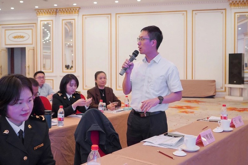 在交流环节,参会企业代表围绕如何巧借政策性工具规避贸易风险、监测点填报等问题,与现场专家进行交流互动。