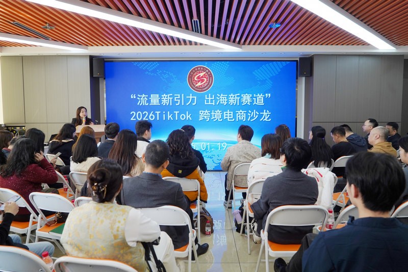 为助力会员企业抢抓TikTok跨境赛道红利、破解出海增长难题,2026年1月19日下午,汕头市进出口商会在会址重磅举办”流量新引力 出海新赛道”2026 TikTok跨境电商沙龙活动。活动现场人气爆棚,会议室座无虚席,更有不少企业闻讯赶来因位置有限站着听完全程,足见汕头外贸企业抢抓跨境新机遇、为2026发展谋篇布局的热切需求。商会常务副会长、汕头市海潮兴科技有限公司总经理陈平,商会常务副会长、汕头市琪之华服饰实业有限公司总经理张秋娜,商会常务副会长、汕头市康家宝塑料制品实业有限公司副总经理张泽钦,商会副会长、汕头市宜家贸易有限公司总经理陈泽思及80多名会员代表齐聚现场,共探出海新路径,沙龙由商会秘书长王枫主持。