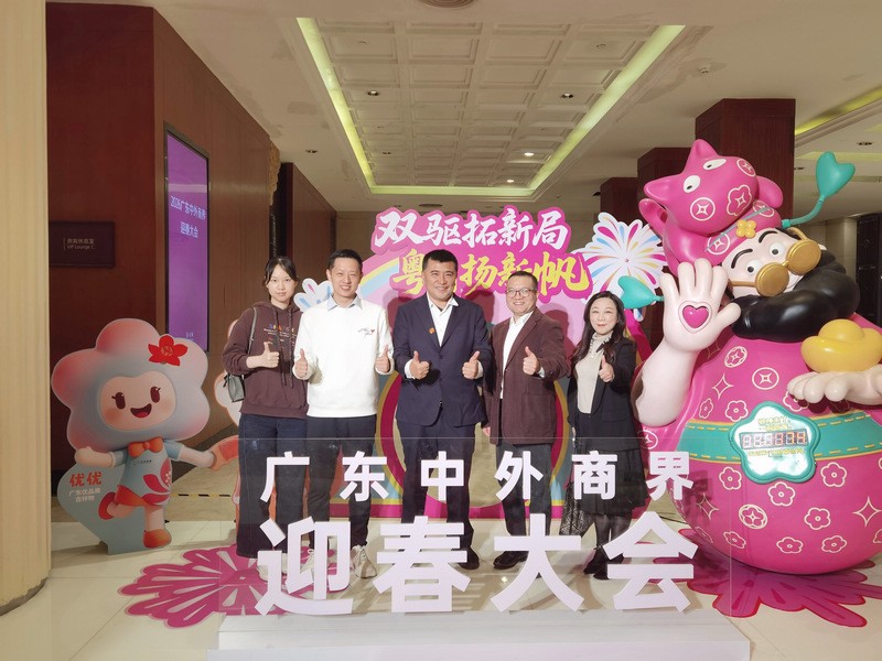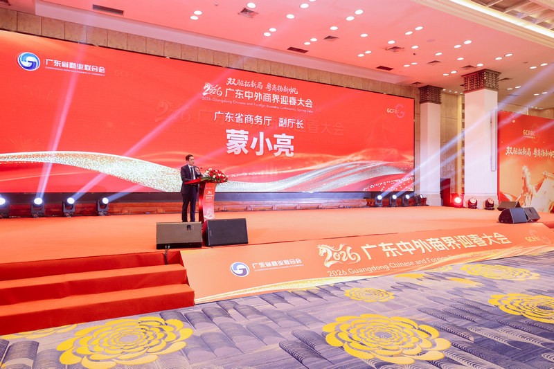会上,广东省商务厅副厅长蒙小亮、广东省商业联合会会长刘穗龙等嘉宾先后发表讲话,深入剖析当前国内外经济发展新形势与新机遇,明确市场资源整合、企业协同发展、内外贸一体化推进的核心价值,呼吁广大粤商抢抓发展机遇、坚持务实创新,以实干精神助推广东经济高质量发展。现场还举行新春祝福仪式,省(市)直有关单位领导、商联会负责人及外国驻穗总领馆官员同台送福,传递出政企同心、携手共促经贸发展的坚定信心。