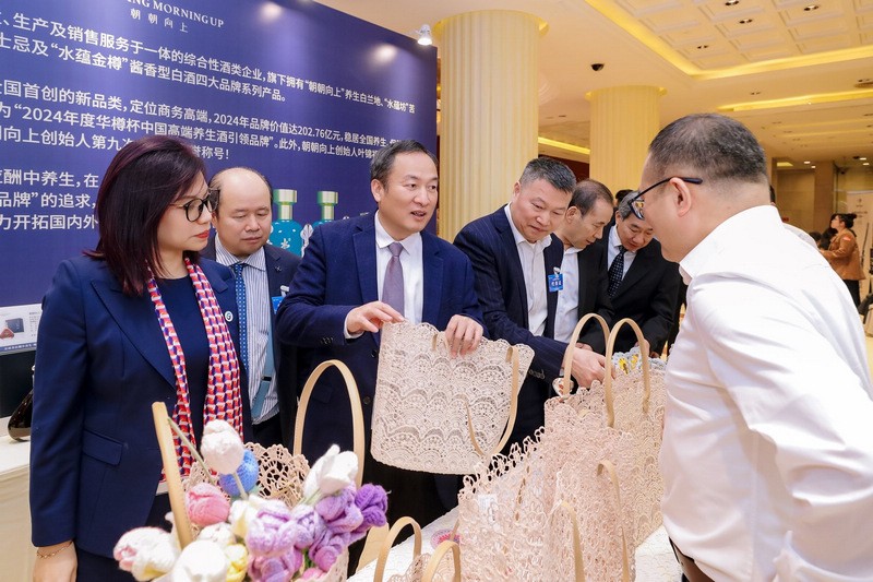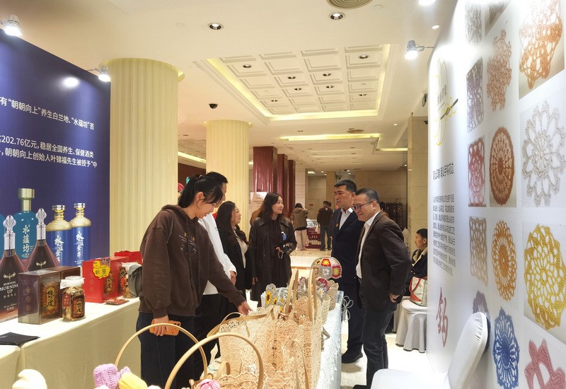 大会专设优质产业展示区,聚焦地方特色产业、非遗文创、优质外贸产品等领域,为企业搭建品牌展示与精准对接的窗口。汕头市进出口商会监事单位汕头市焕荣贸易有限公司携自创品牌“潮汕印象”精彩亮相,凭借独特的非遗文化内核与优质的产品品质成为展区焦点。陈晓东监事长现场向嘉宾介绍企业非遗手钩花产品,该产品依托“机械标准化+手工精细化”复合工艺,在保障品质稳定的同时大幅提升产能效率,吸引众多商界精英与集采企业代表驻足参观、洽谈合作。