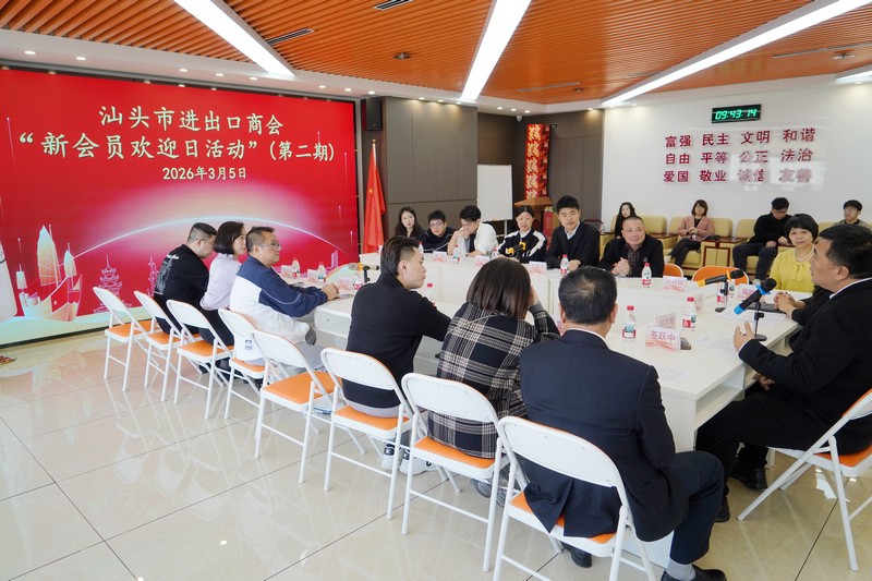 自2025年11月27日商会第六届理事会就职以来,众多企业踊跃入会,充分彰显了商会的凝聚力、影响力,以及广大进出口企业对商会的高度认可与信赖。3月5日上午,汕头市进出口商会在会址举行第六届第二期“新会员欢迎日”活动,会长邱志宏、秘书长王枫与15家新晋升、新入会的理事及会员企业代表欢聚一堂,共同交流、共话发展。