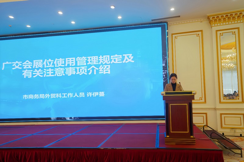 会议强调,各参展企业务必高度重视,牢记广交会新变化、新要求,严格遵守广交会展位使用管理规定,认真做好各项准备工作,避免违规使用展位。要聚焦出口成交,全力拓市场、拿订单,扩大国际市场份额。要熟悉广交会展位评审有关规定,努力提高企业出口实绩,加强品牌建设,用好用足广交会平台做大做强。活动现场市商务局工作人员针对参展企业关心的问题进行答疑解惑。主办方还特邀中国银行专家作2026年人民币汇率走势分析及汇率保值建议,帮助企业有效规避汇率风险、降低经营成本,为企业顺利参展、拓展海外市场提供有力支撑。