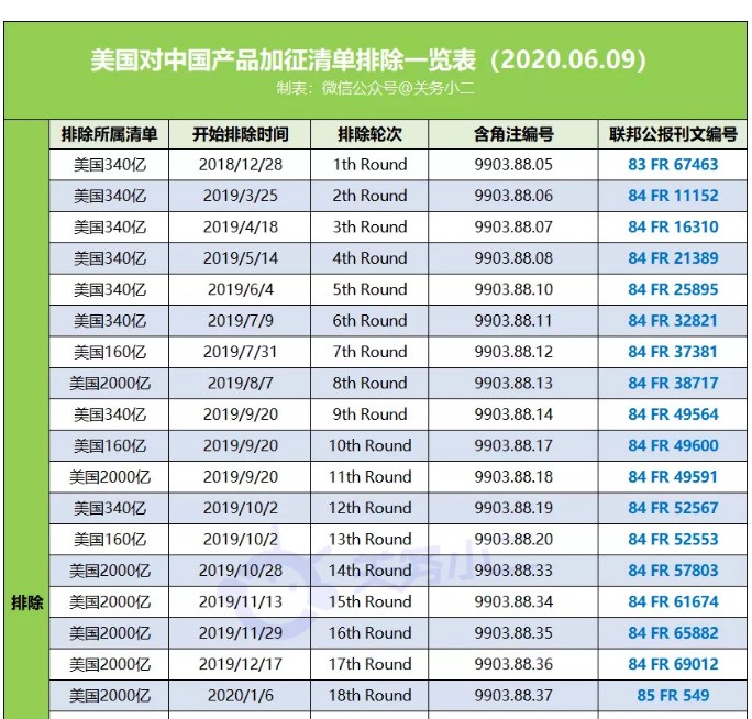 2020年6月8日美国排除对华商品加征关税清单情况: