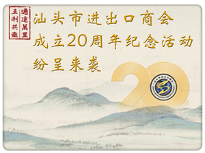 砥砺前行二十载,继往开来谱新篇!今年为汕头市进出口商会成立20周年,虽受疫情影响,商会仍继续进行“通途万里 互利共赢”主题活动,不举办线下庆典,在线上由会长作商会成立20周年讲话、与祝贺机构连线、播放贺词贺信等。