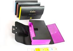 13 pockets with metal snap closure