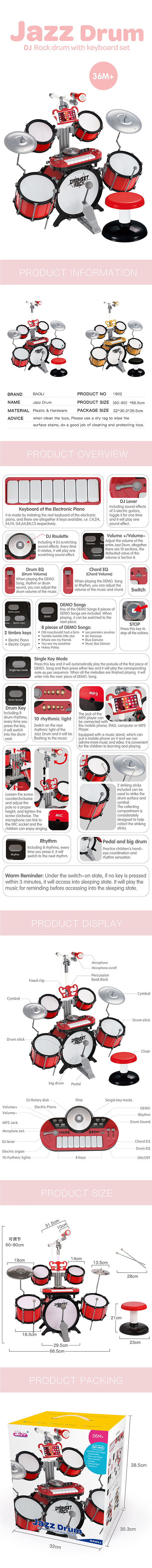 • Product Name:DJ Rock Drum With Keyboard Set Jazz Drum